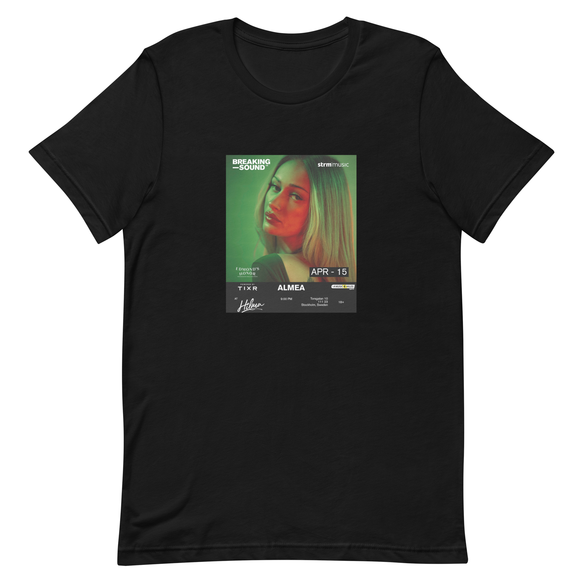 Limited Edition Artist Merch › ALMEA x Breaking Sound Limited Edition Tee Image 1 of 1 ALMEA x Breaking Sound Limited Edition Tee $35.00 Front print. 100% cotton. Size: XS S M L XL 2XL Purchase Added! Front print. 100% cotton.