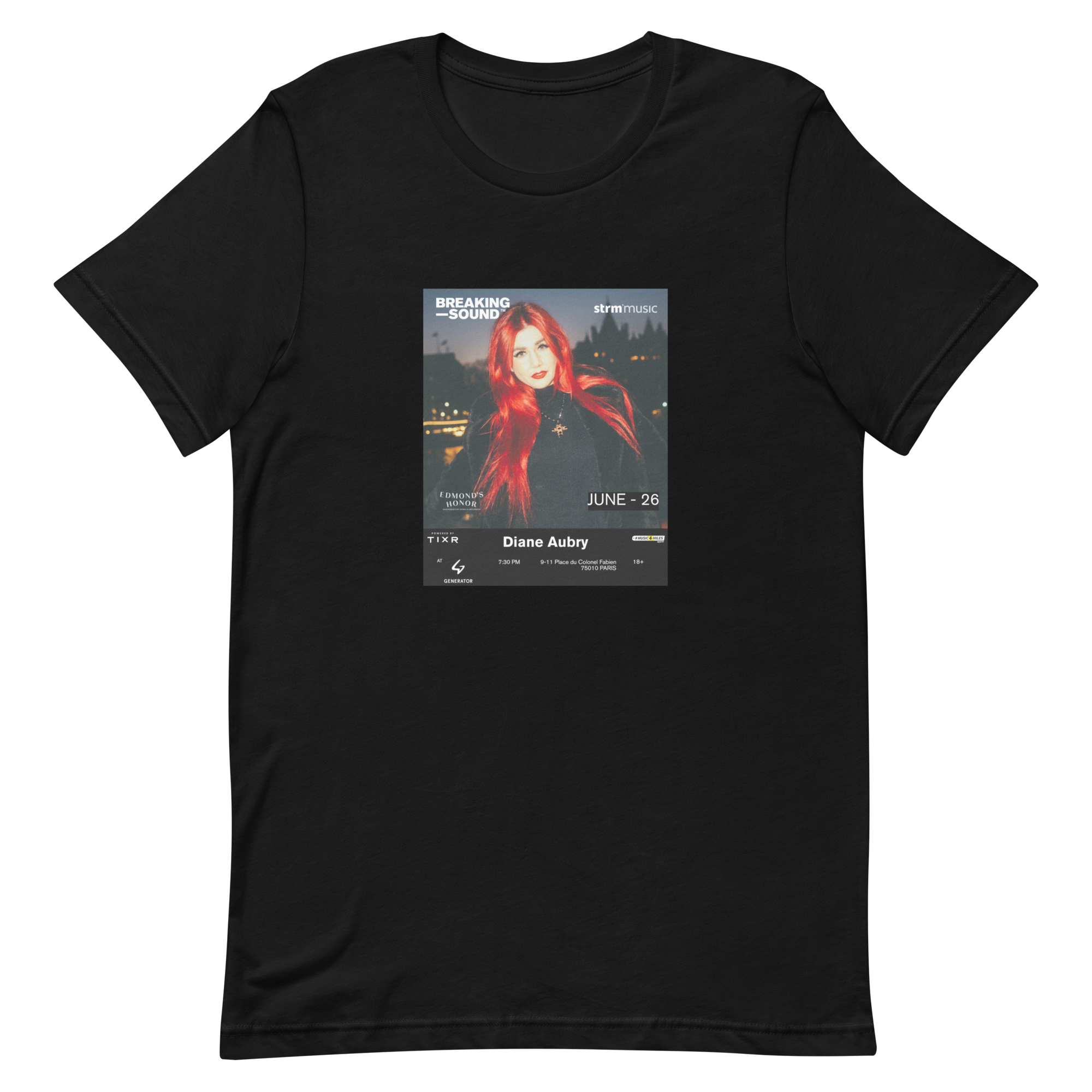 Limited Edition Artist Merch › Diane Aubry x Breaking Sound Limited Edition Tee Image 1 of 1 Diane Aubry x Breaking Sound Limited Edition Tee $35.00 Front print. 100% cotton. Size: XS S M L XL 2XL Purchase Added! Front print. 100% cotton.