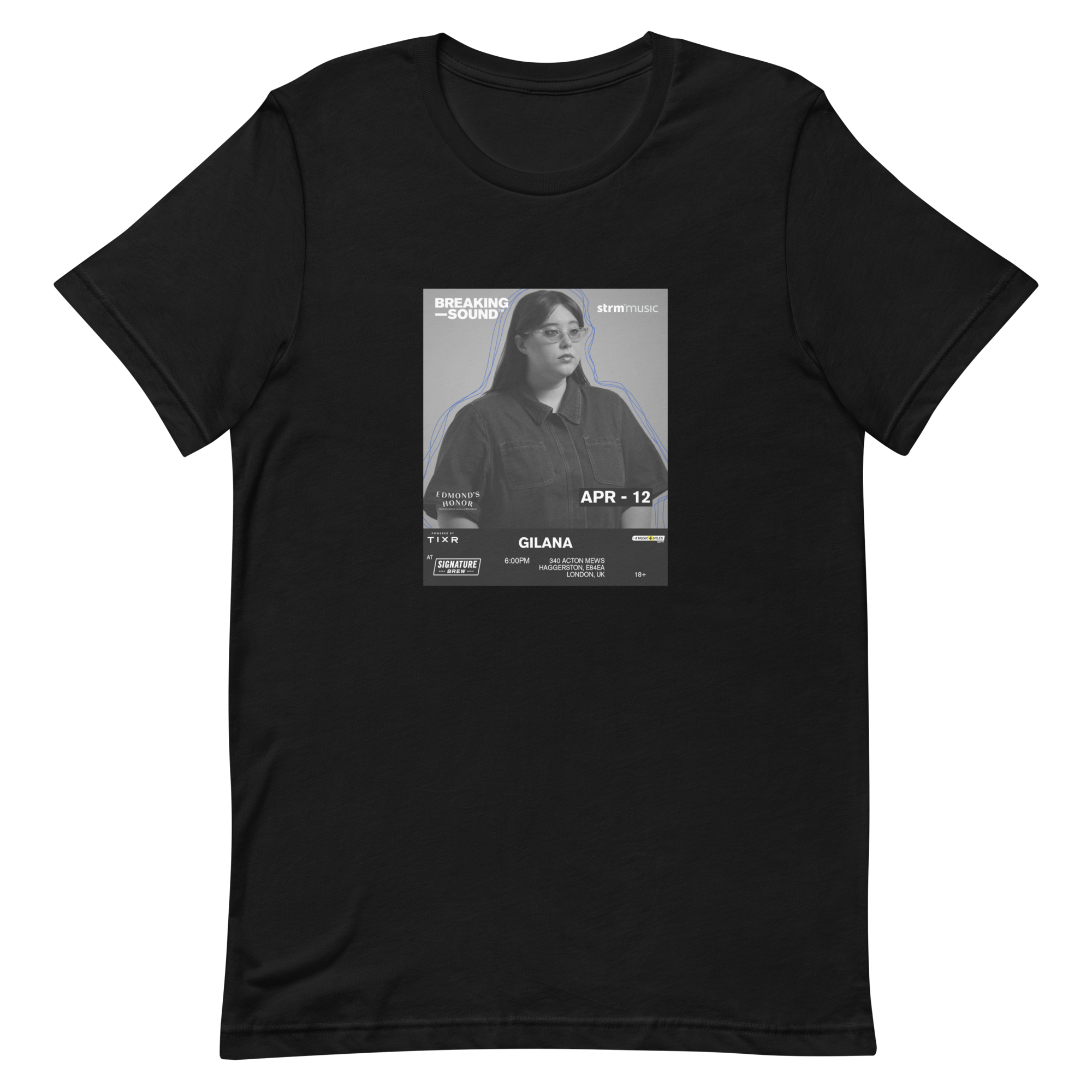 Limited Edition Artist Merch › GILANA x Breaking Sound Limited Edition Tee Image 1 of 1 GILANA x Breaking Sound Limited Edition Tee $35.00 Front print. 100% cotton Size: XS S M L XL 2XL Purchase Added! Front print. 100% cotton