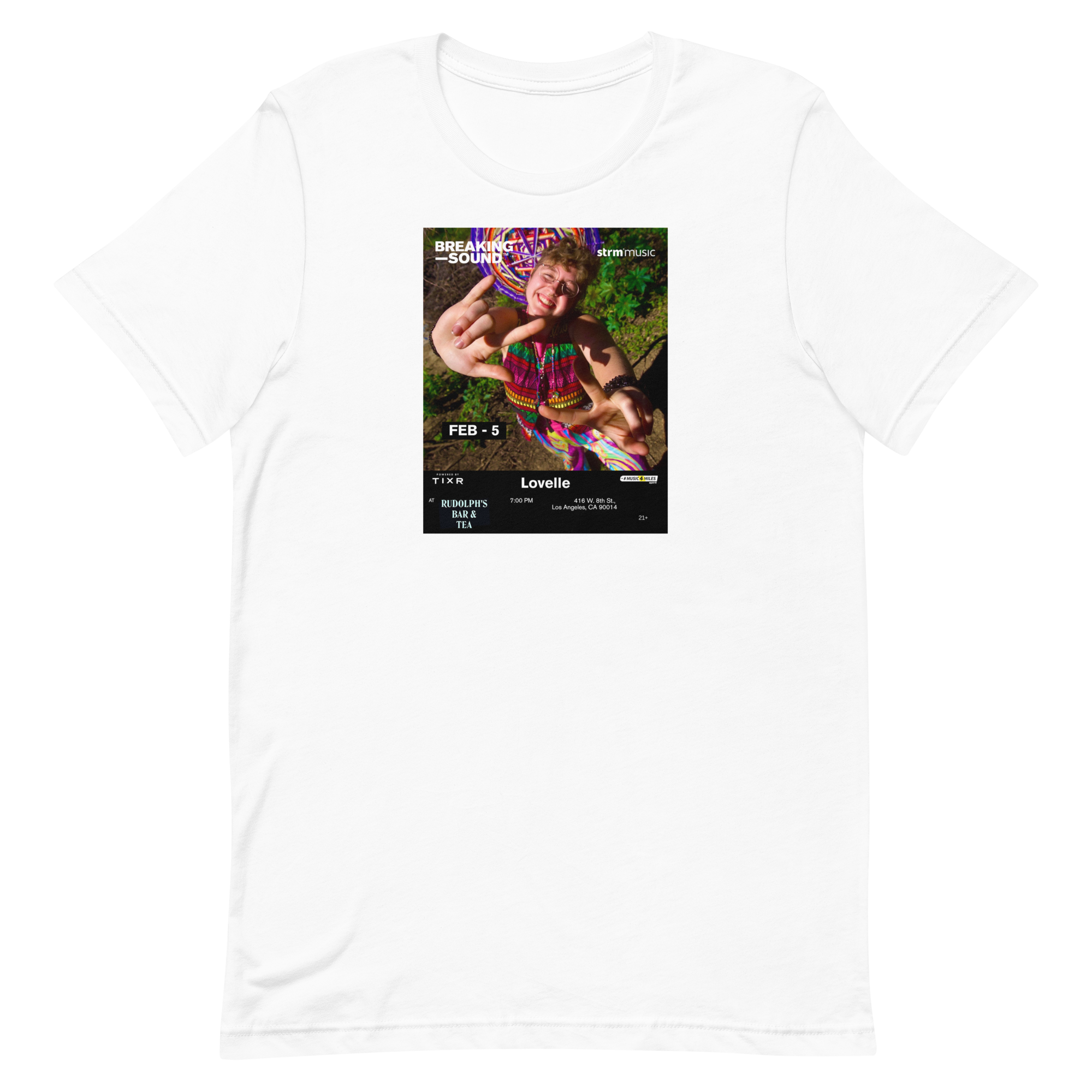 Limited Edition Artist Merch › LOVELLE x Breaking Sound Limited Edition Tee Image 1 of 1 LOVELLE x Breaking Sound Limited Edition Tee $35.00 Front print. 100% cotton. Size: XS S M L XL 2XL Purchase Added! Front print. 100% cotton.