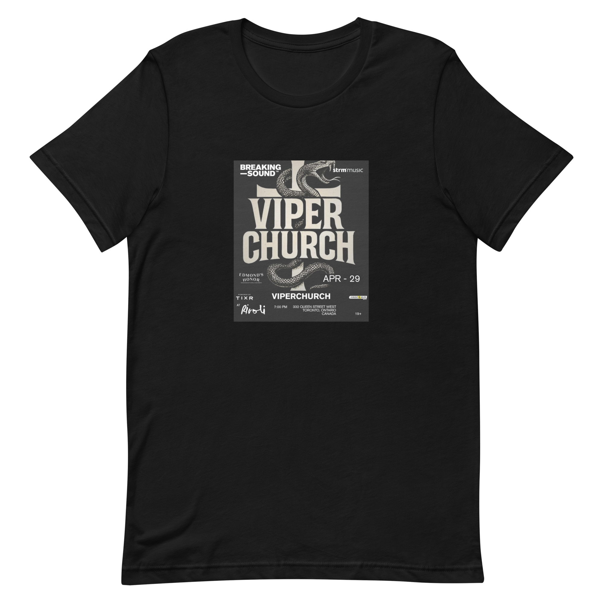 Limited Edition Artist Merch › VIPERCHURCH x Breaking Sound Limited Edition Tee Image 1 of 1 VIPERCHURCH x Breaking Sound Limited Edition Tee $35.00 Front print. 100% cotton Size: XS S M L XL 2XL Purchase Added! Front print. 100% cotton